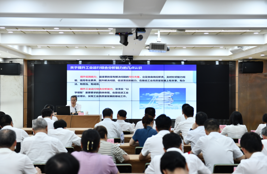 厅党组成员、总工程师施惠财为大家作关于提升干部工业运行综合分析能力的专题辅导报告,从增强促进工业稳增长的政治自觉和行动自觉、熟练掌握工业运行分析的有关指标、多维度开展工业运行比较分析等几方面进行深刻阐述,既有专业的理论讲解,又有生动的案例分析,对工信干部提升工作能力、练好基本功具有很强的针对性和指导性。