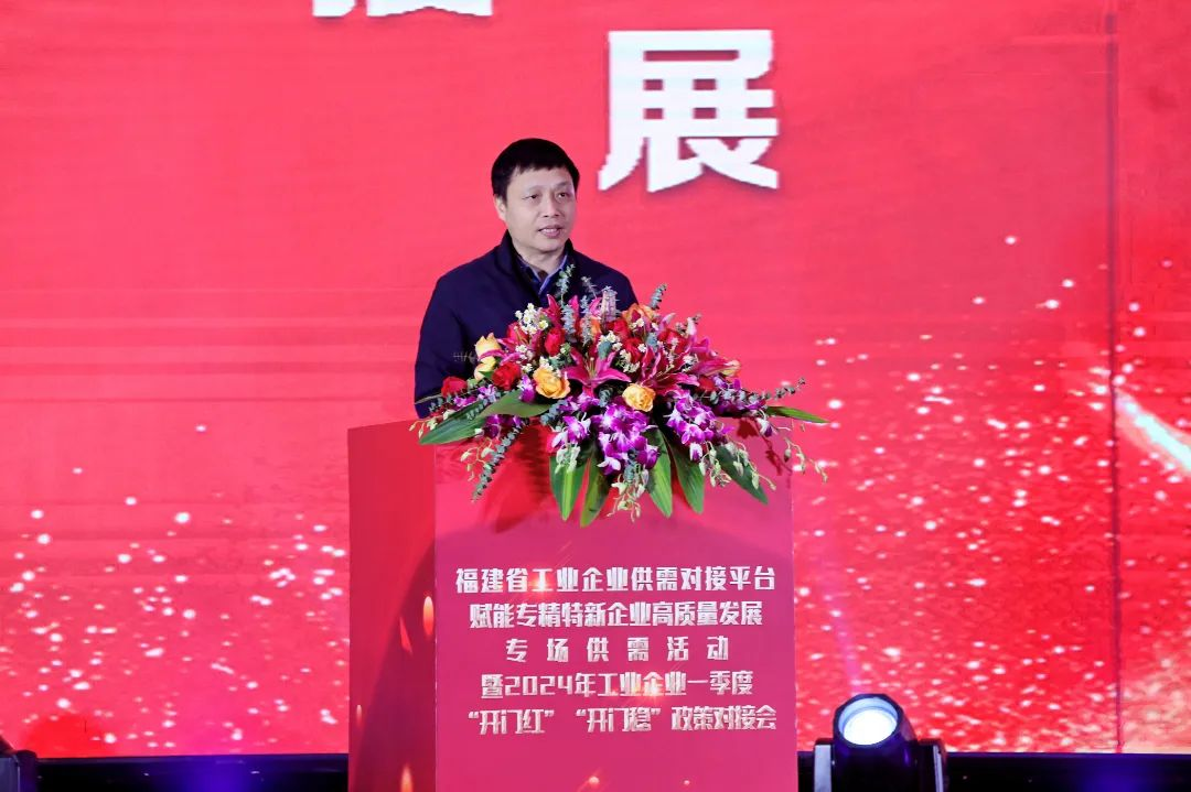 为加快推进新型工业化,发挥福建省工业企业供需对接平台作用,促进全省工业稳定增长,实现一季度“开门红”“开门稳”,助力全省专精特新中小企业高质量发展,1月29日,省工业企业供需对接平台赋能专精特新企业高质量发展专场供需活动暨2024年工业企业一季度“开门红”“开门稳”政策对接会在福州市举行,博牛论坛 有关处室、省中小企业服务中心、各设区市工信局有关领导,全省各地180余家专精特新企业以及服务机构参加本次活动,线上直播收看观众达2.32万人。博牛论坛 党组成员、副厅长许永西出席活动并致辞。